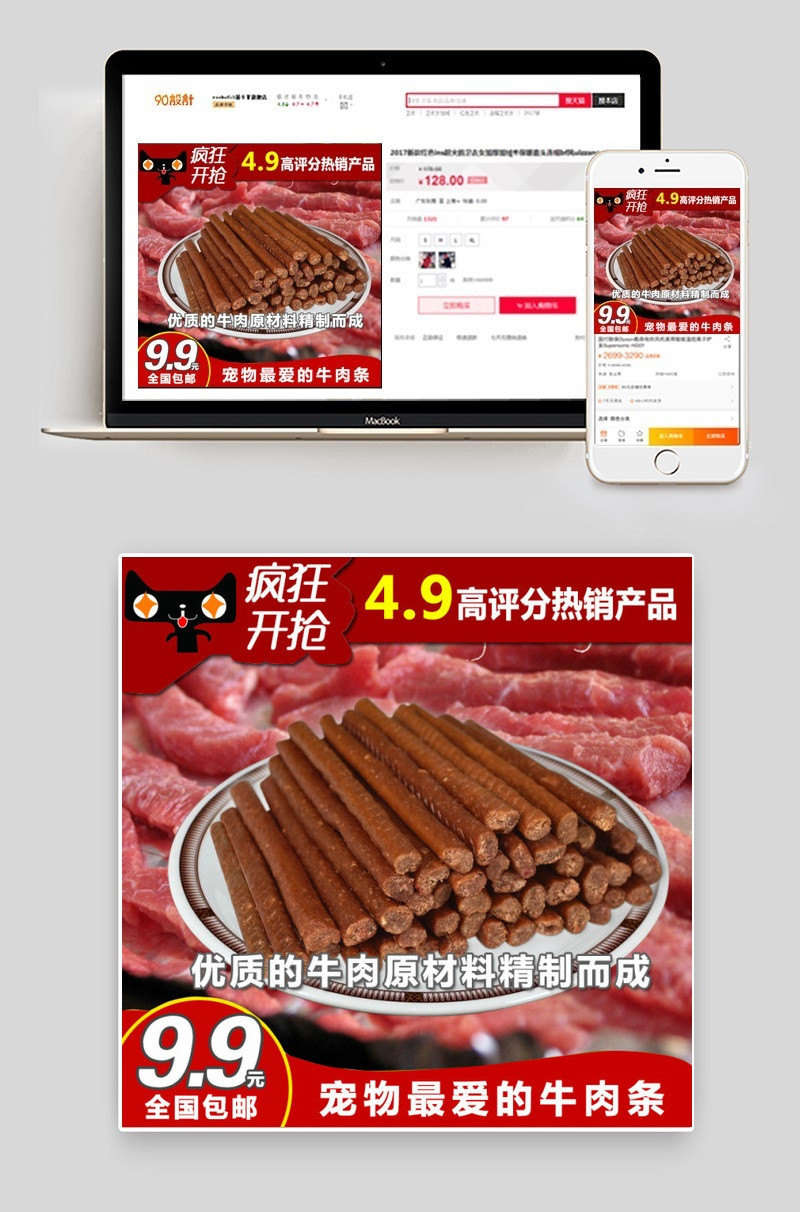 宠物牛肉条主图 宠物零食主图 零食直通车图 红色主题主图 直通车图