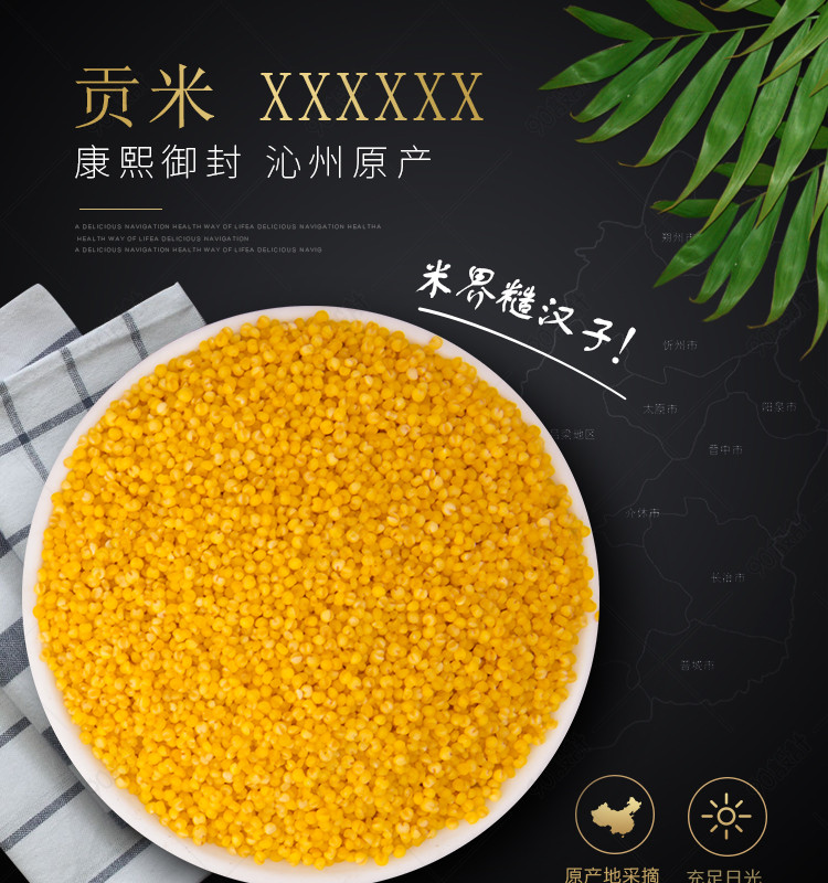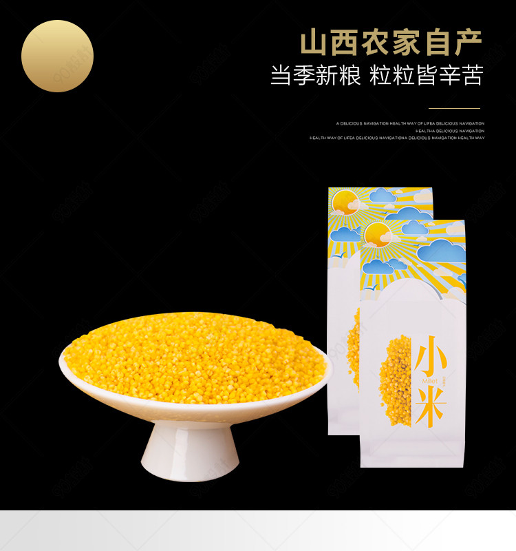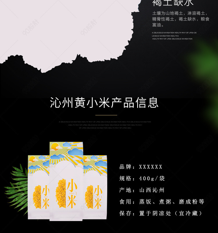 黑色简约大气日常通用食品粮油米面有机黄小米详情页产品描述页通用
