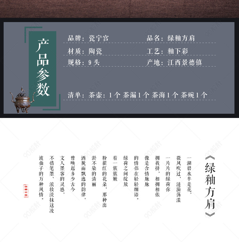 90设计提供厨具茶具套装茶壶详情页PSD模板设计素材下载,高清PSD格式。【通用】多类目可用,产品、模特均可替换。【PSD】精细分层,贴好片。【设计】由90设计师独家设计。点击右侧免费下载按钮可进行厨具茶具套装茶壶详情页PSD模板淘宝设计素材高速下载。