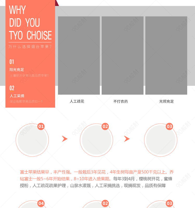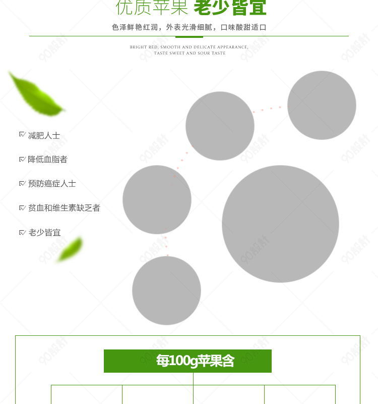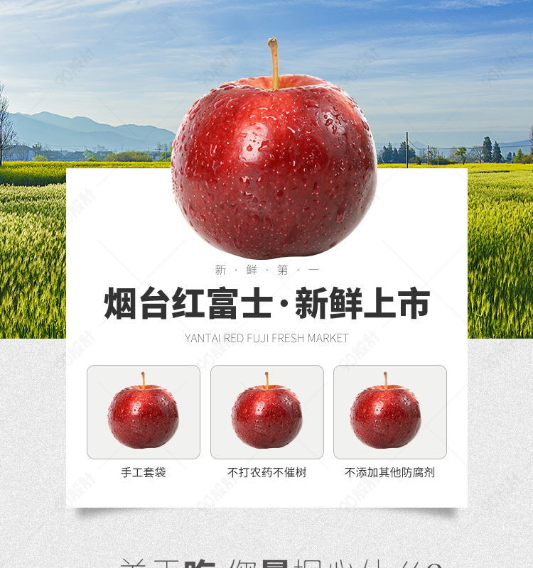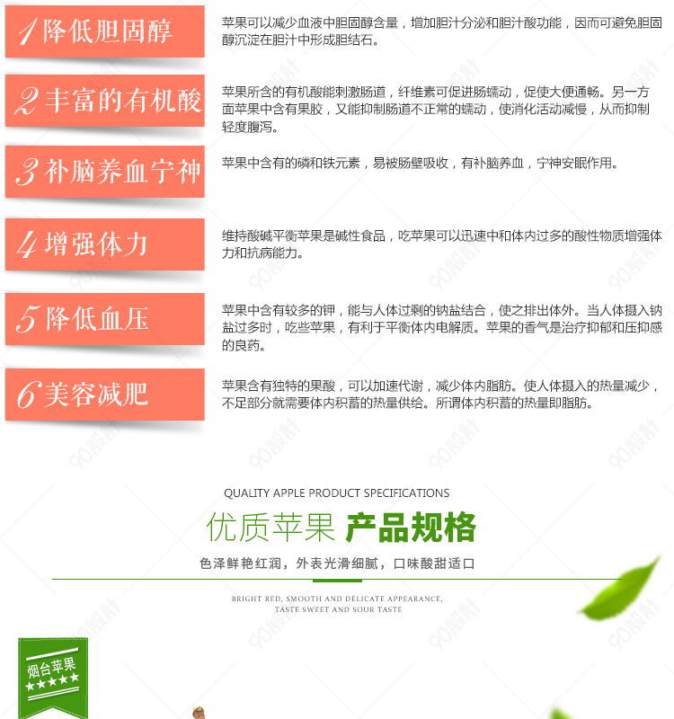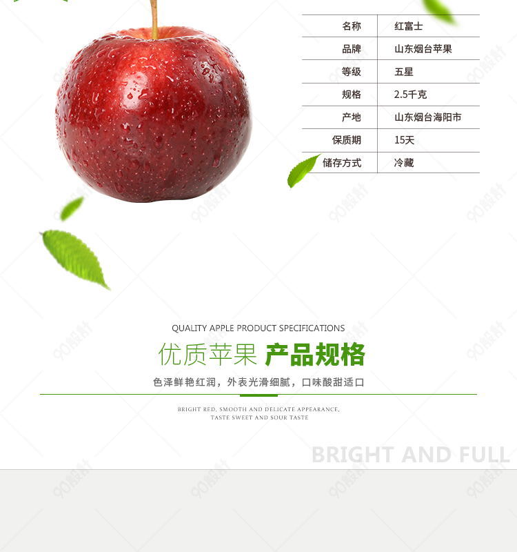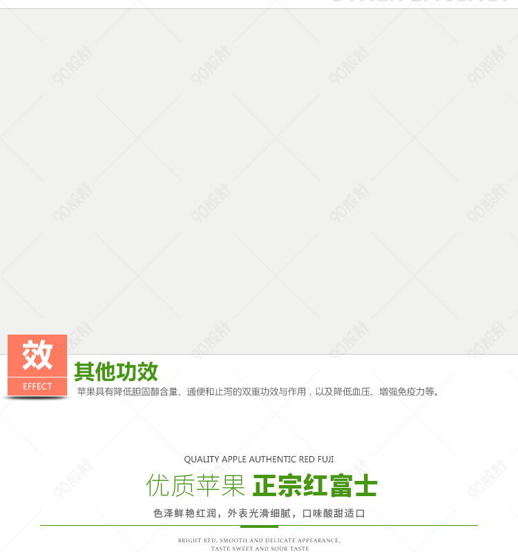 90设计提供生鲜水果红富士苹果详情页PSD模板设计素材下载,高清PSD格式。【通用】多类目可用,产品、模特均可替换。【PSD】精细分层,贴好片。【设计】由90设计师独家设计。点击右侧免费下载按钮可进行生鲜水果红富士苹果详情页PSD模板淘宝设计素材高速下载。