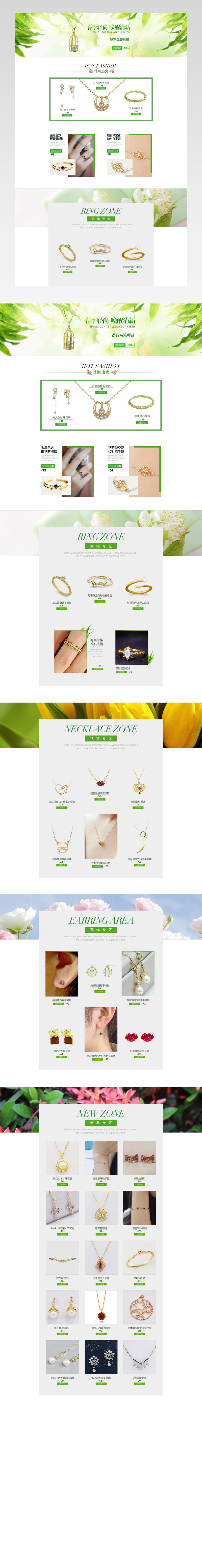 创意绿色春天清新唯美风时尚首饰珠宝店铺首页模版