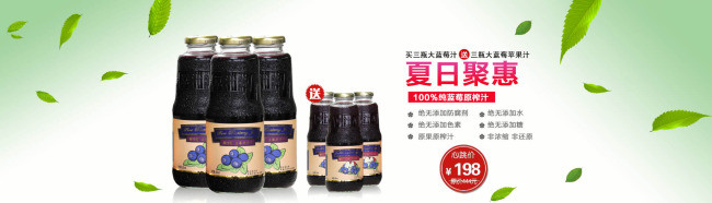 淘宝果汁饮料促销海报 果汁饮料 果汁 夏日钜惠 蓝莓汁 树叶背景 淘宝全屏海报 淘宝促销海报