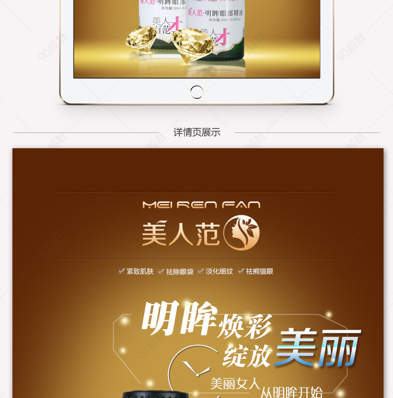 90设计提供大气简约风明眸眼部精油PSD详情页精细分层设计素材下载,高清PSD格式。【通用】多类目可用,产品、模特均可替换。【PSD】精细分层,贴好片。【设计】由90设计师独家设计。点击右侧免费下载按钮可进行大气简约风明眸眼部精油PSD详情页精细分层淘宝设计素材高速下载。