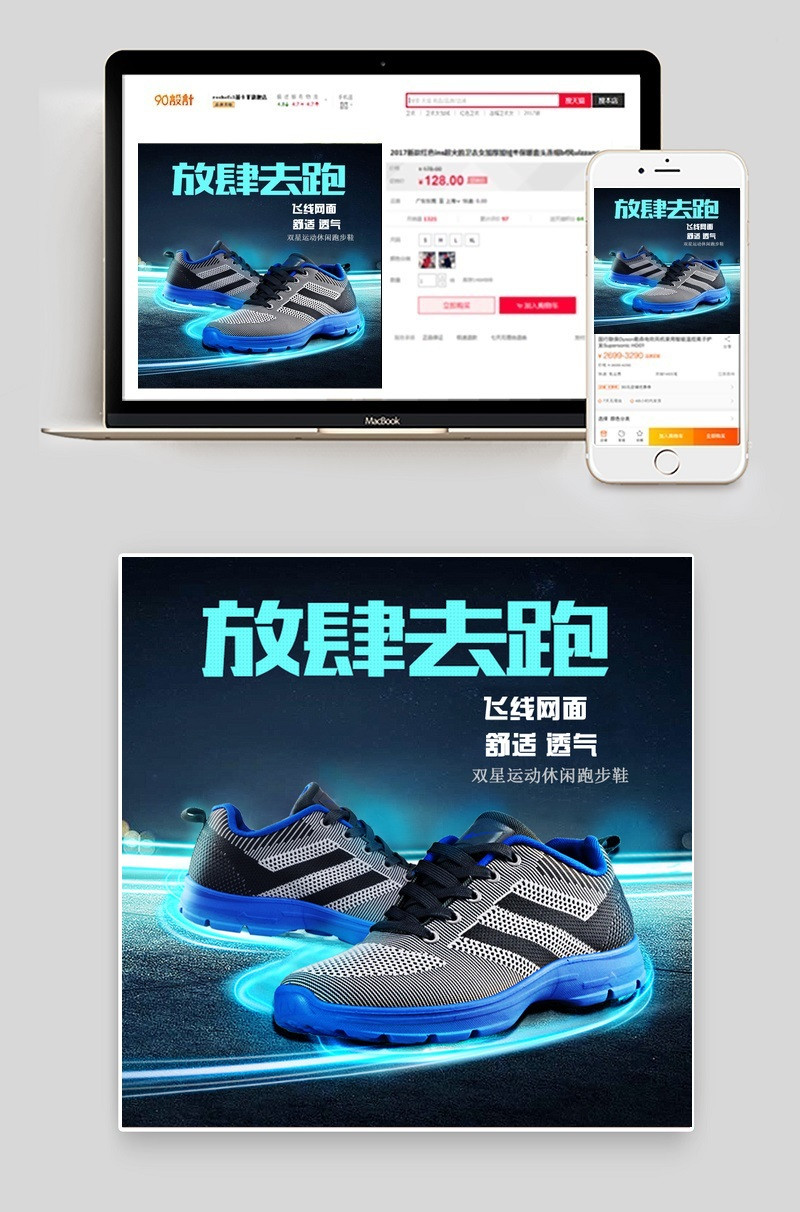 手机端:运动男鞋舒适透气主图PSD