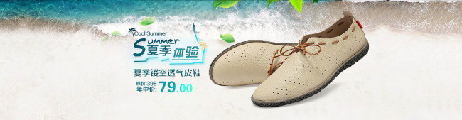 淘宝男士夏季透气皮鞋全屏促销海报