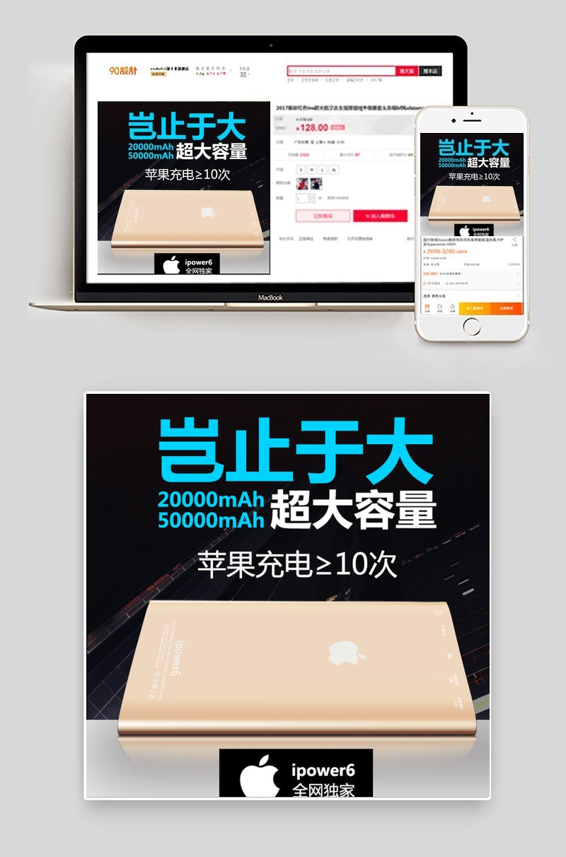 淘宝直通车 直通车设计 苹果主图 创意直通车 移动电源设计 移动电源海报 设计 淘宝界面设计 淘宝广告banner 72DPI PSD