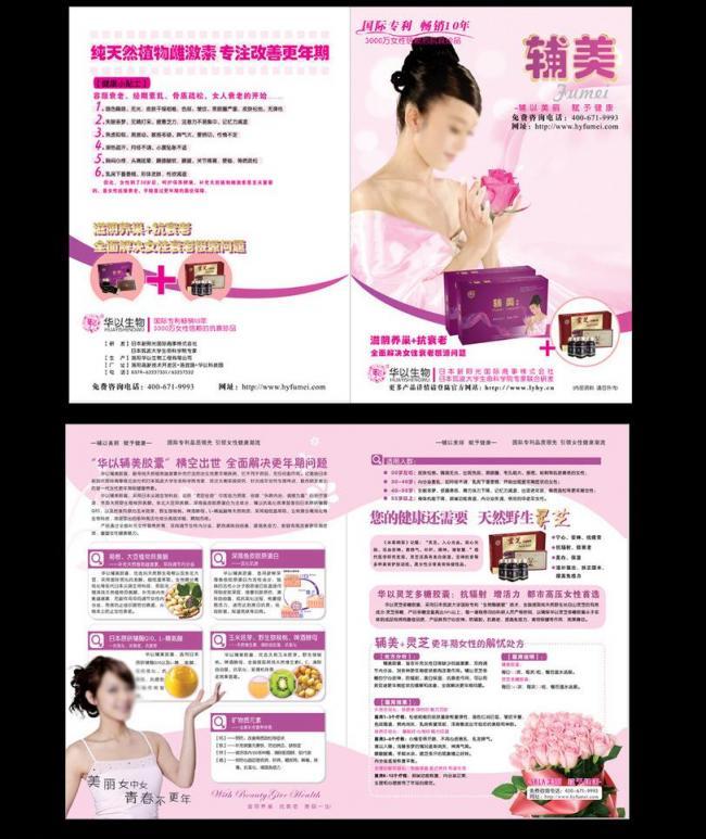 辅美 粉红色 美女 玫瑰 水果 天然 雌激素 矿物质元素 保健品 宣传单 dm宣传单 广告设计 矢量 cdr