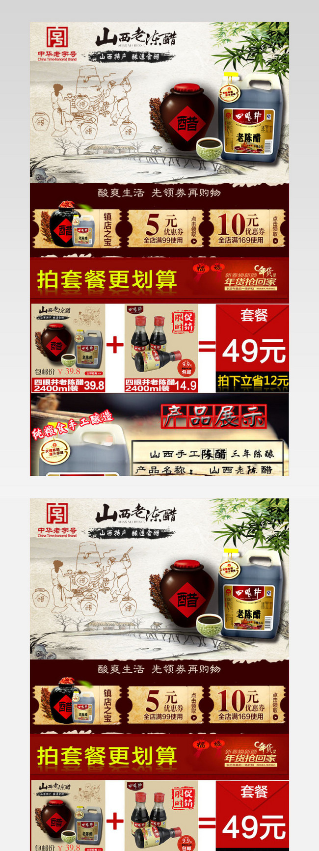 90设计提供山西四眼井陈醋详情页设计素材下载,高清PSD格式。【通用】多类目可用,产品、模特均可替换。【PSD】精细分层,贴好片。【设计】由90设计师独家设计。点击右侧免费下载按钮可进行山西四眼井陈醋详情页淘宝设计素材高速下载。