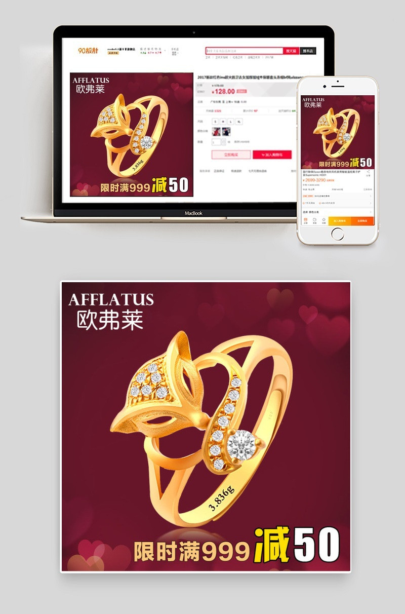 黄金戒指直通车图 天猫直通车图 淘宝主图 天猫主图 直通车图 京东主图 戒指主图 戒指直通车主图 戒指广告