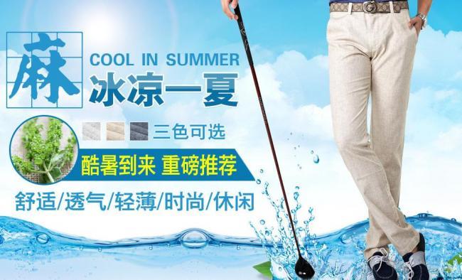 裤子海报素材下载 裤子海报模板下载 裤子海报 长裤 裤子 亚麻 夏日 直通车 清凉 麻布 水花 中文模板 网页模板 源文件 72dpi psd