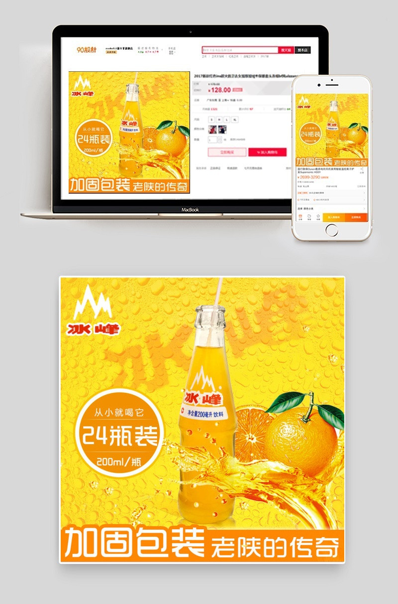 冰峰橙味碳酸饮料直通车主图