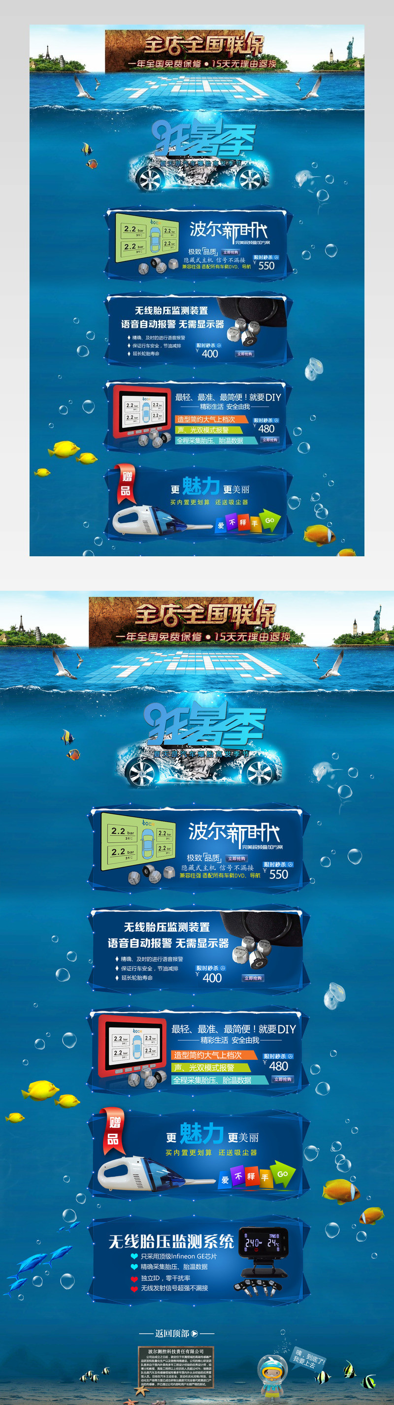 夏季 蓝色 海底 鱼 汽车配件 PC端首页模板 无线胎压监测装置