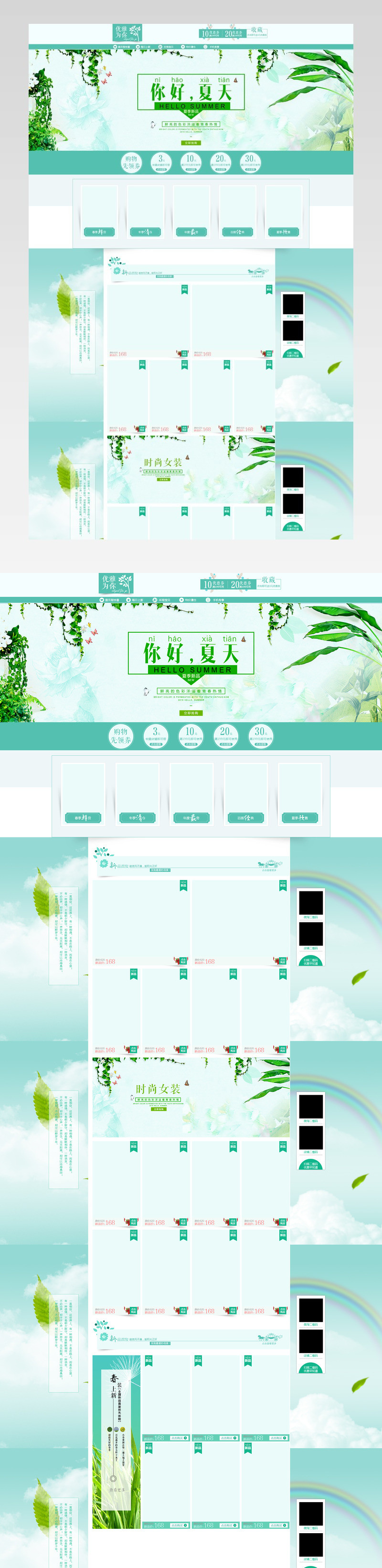 女装 T恤 裙子 活动页 首页装修 夏季新品 上新页面 psd模板