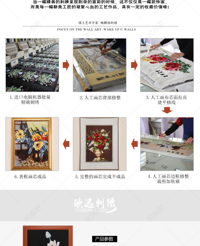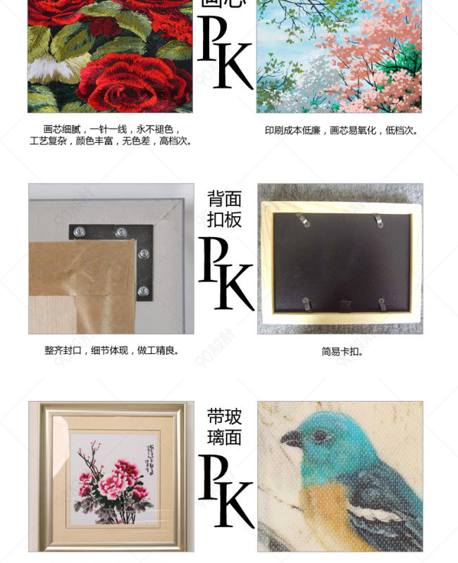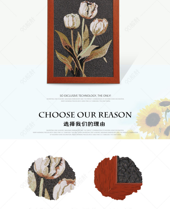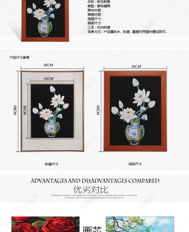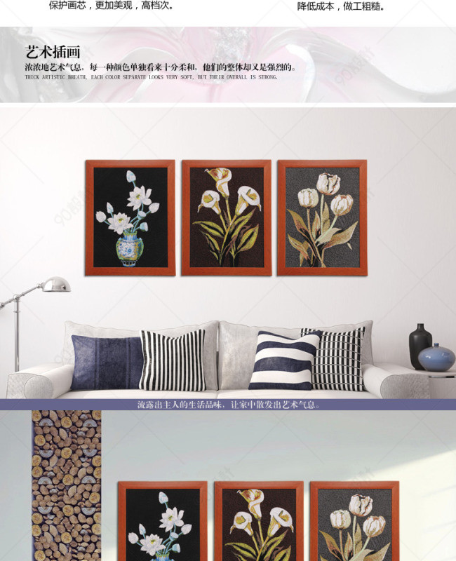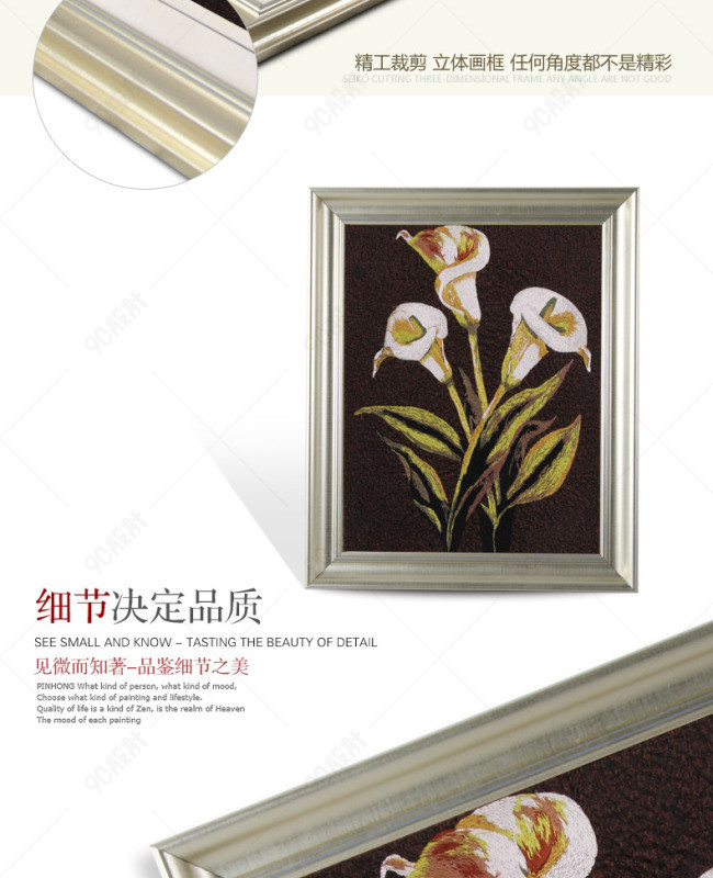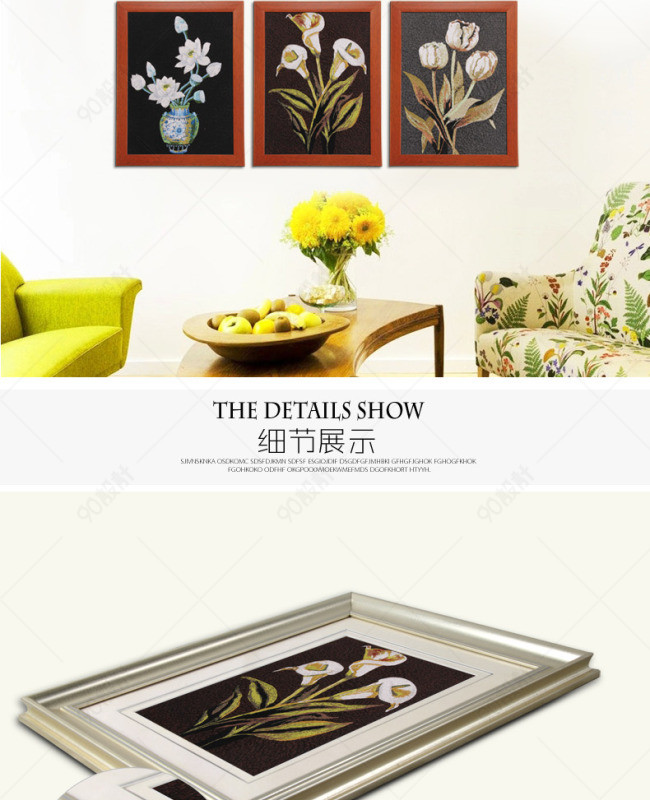 天猫详情页 淘宝详情页 装饰画 插画 三联画 刺绣 苏氏机绣 花 客厅装饰画 卧室装饰画 餐厅装饰画
