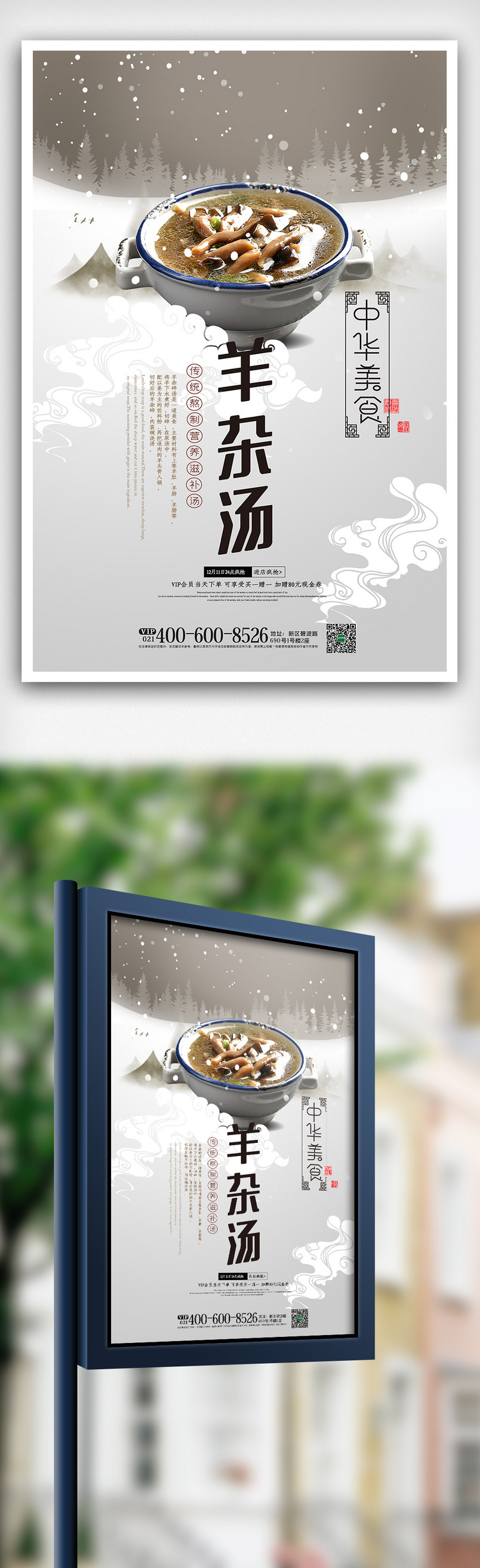 中华美食之冬季美食羊杂汤海报