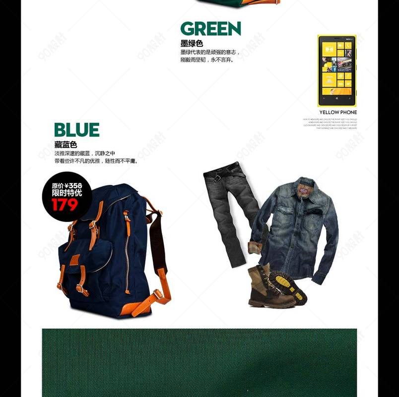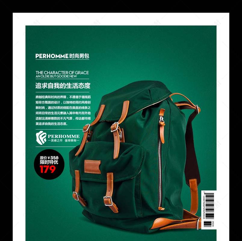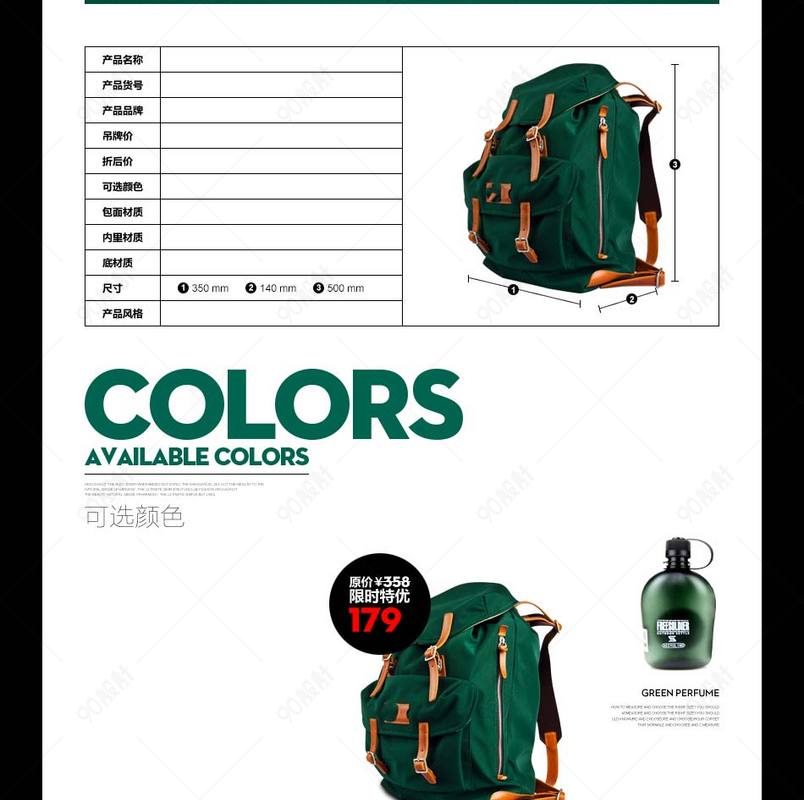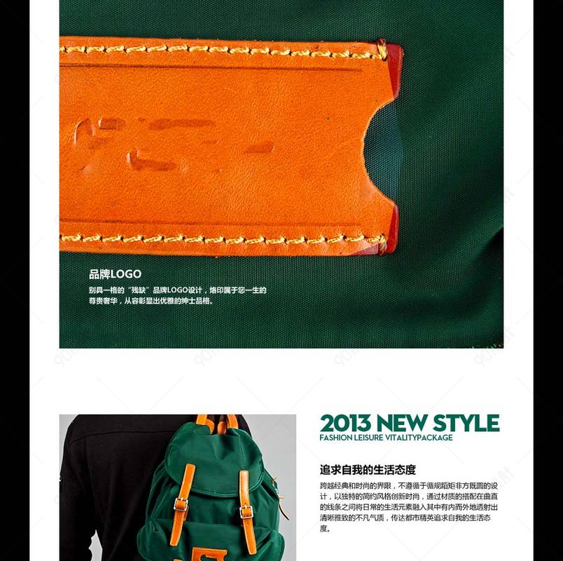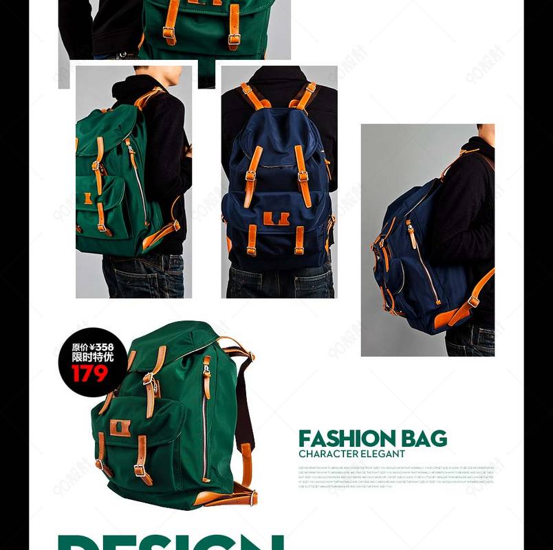 90设计提供男士背包详情页设计素材下载,高清PSD格式。【通用】多类目可用,产品、模特均可替换。【PSD】精细分层,贴好片。【设计】由90设计师独家设计。点击右侧免费下载按钮可进行男士背包详情页淘宝设计素材高速下载。